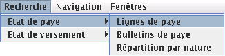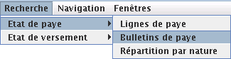 On accède aux recherche sur Bulletins de paye par le menu Recherche / Etat de paye / Bulletins de paye