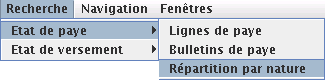 On accède aux recherches sur répartition par nature par le menu Recherche / Etat de paye / Répartition par Nature