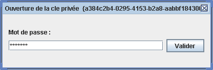 L'outil de signature demande alors le mot de passe d'accès à la clef privée :